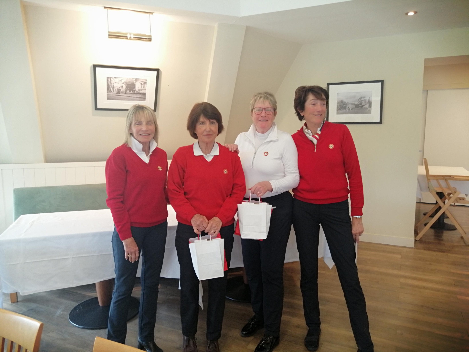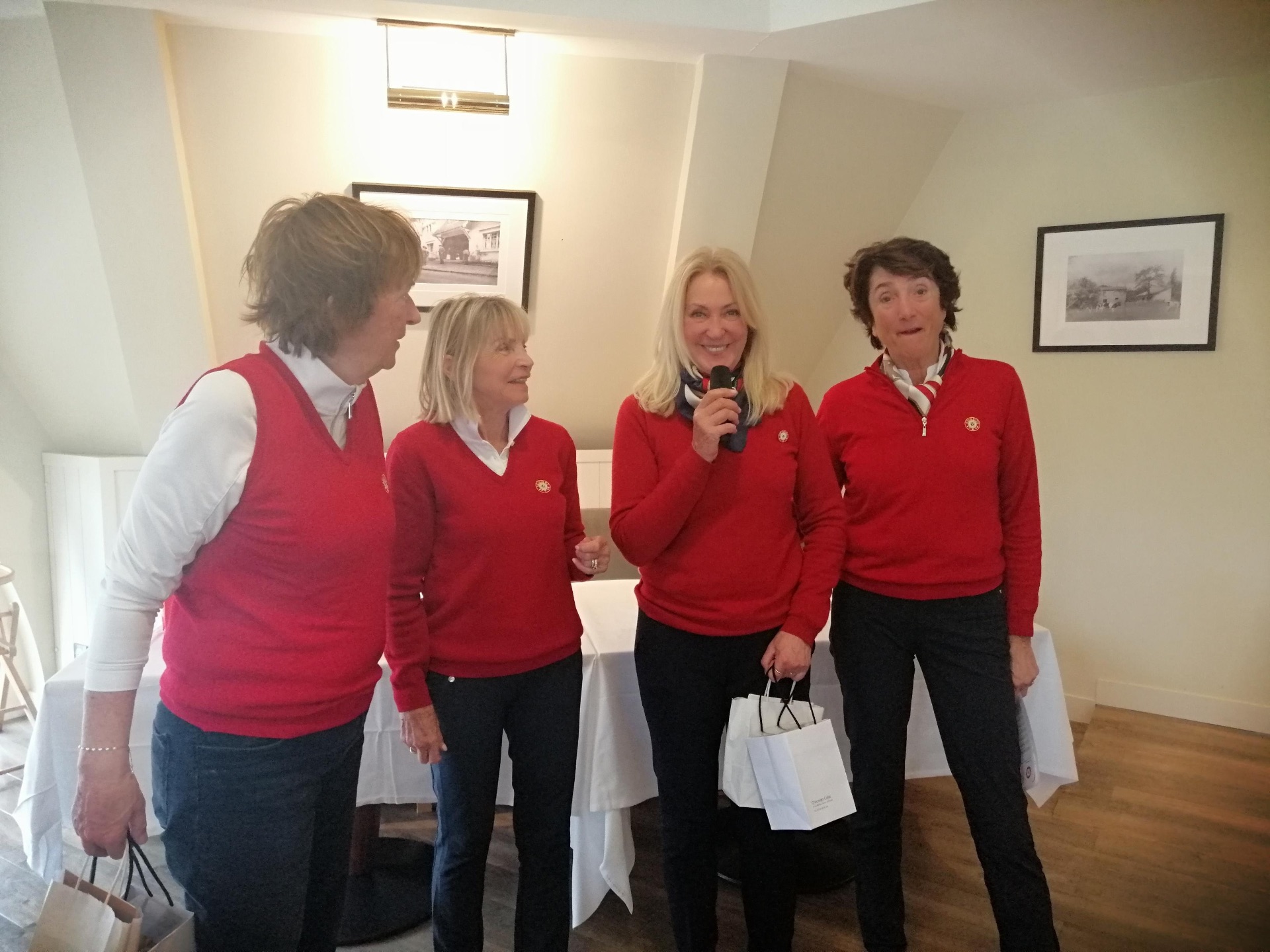 Les premières en Net (et en Brut !) nous ont expliqué qu'il fallait choisir Driver - Bois 3 ou 5 - et Approche Wedge ... pour gagner ! Très différent du choix de beaucoup d'entre nous, qui avions le Sandwedge dans le sac, car il ya beaucoup de bunkers sur le Jaune !