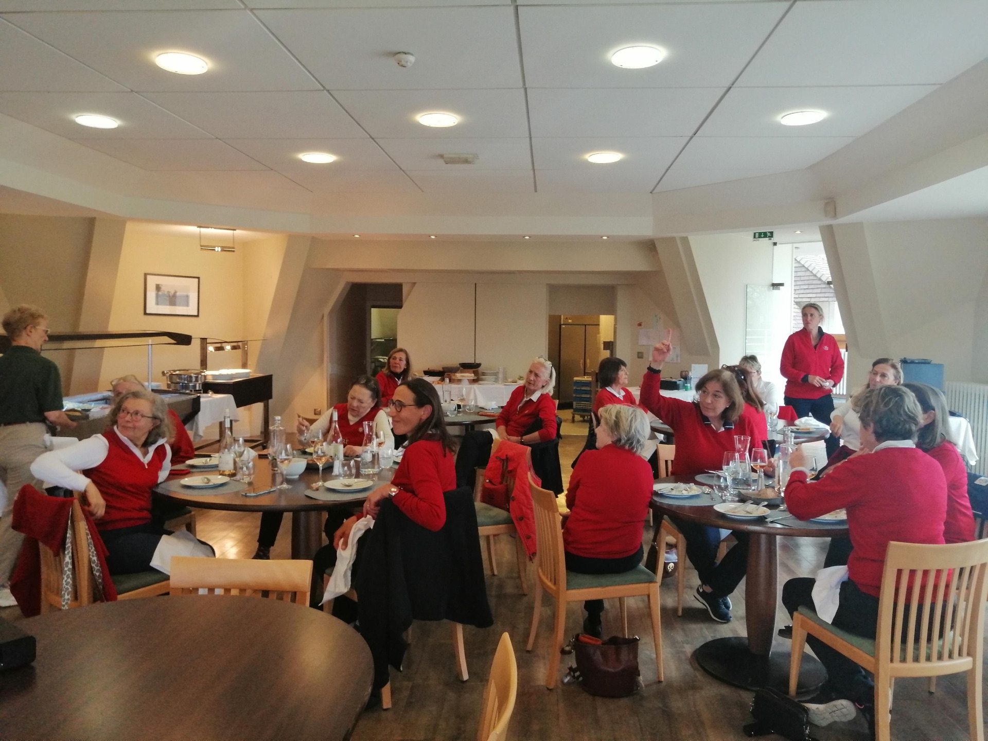 Après la partie, un déjeuner-buffet nous attendait au 1er étage du club-house, et une remise des prix en forme de chocolats, ... bientôt Pâques !