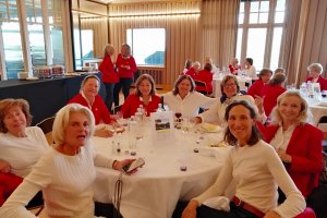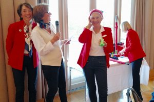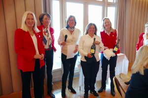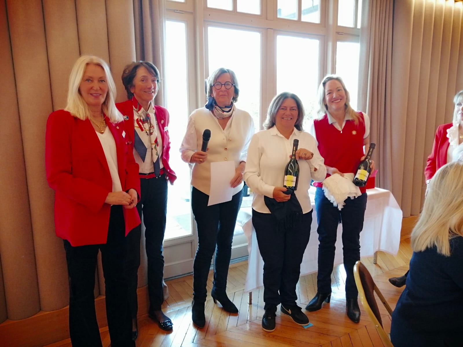 Il était une fois une soixantaine de joyeuses golfeuses qui avaient envie de célébrer ensemble leur année sportive. Saint Cloud les accueillit avec un buffet chaud- froid et force desserts délicieux. Trois courts discours et une remise de prix plus tard, l’ambiance bien chaleureuse s’est invitée dans la salle de bridge voisine (quelle idée de jouer au bridge juste à côté des seniors dames qui festoyent!) au grand désespoir des bridgeurs déconcentrés.